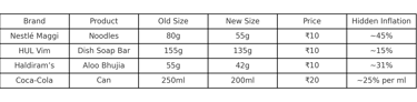 Shrinkflation: Weight of Rs. 10 Packs in India